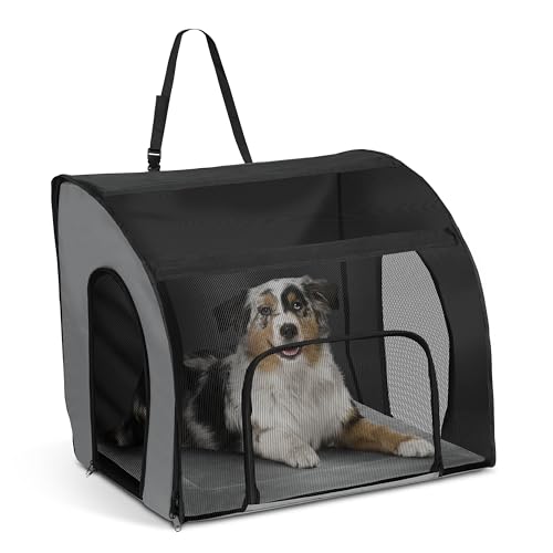 K&H PET Products Resesäkerhetsväska för husdjur, hundlåda för bilresor, hundbärväska för stora hundar, bärbar bilbarnstolskel, grå/svart, stor, 74 x 55 x 65 cm