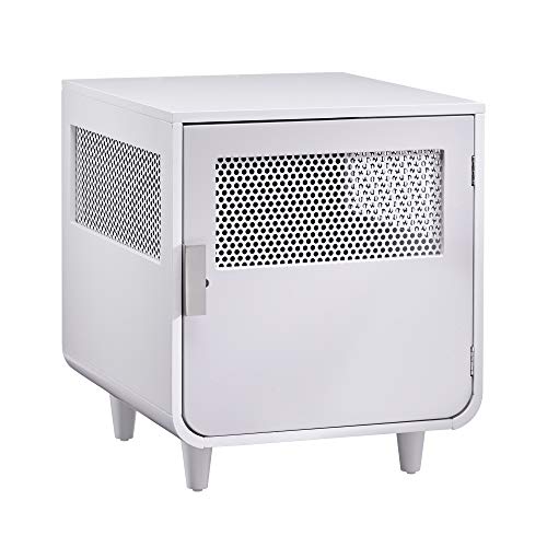Hundlåda med skjutdörr, ventilation, spånskiva och stål, 98 x 58 x 61 cm, Vit