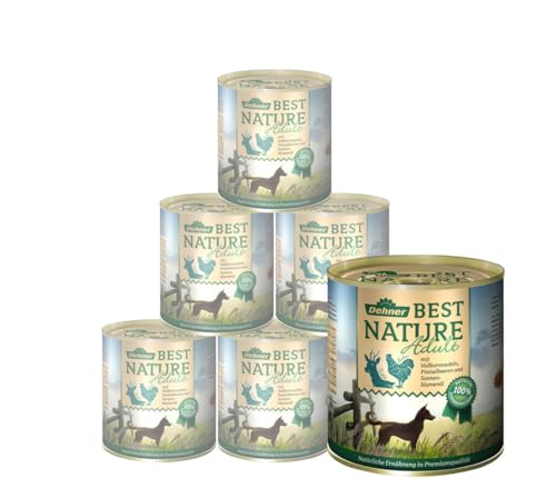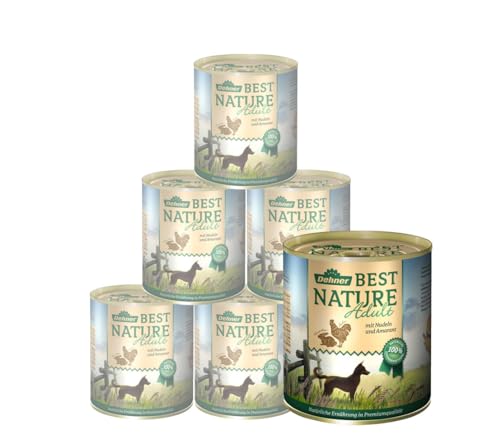 Dehner Best Nature hundmat, våt mat spannmålsfritt, för vuxna hundar, vilt/kyckling/nudlar, 6 x 800 g burk (4,8 kg)