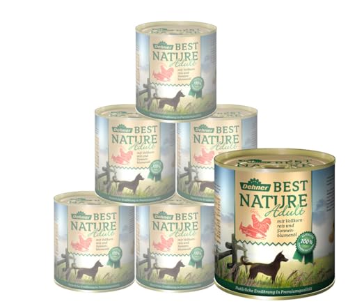 Dehner Best Nature Hundmat Light, våt mat fettreducerad, för överviktiga hundar, kyckling/morot, 6 x 800 g burk (4,8 kg)