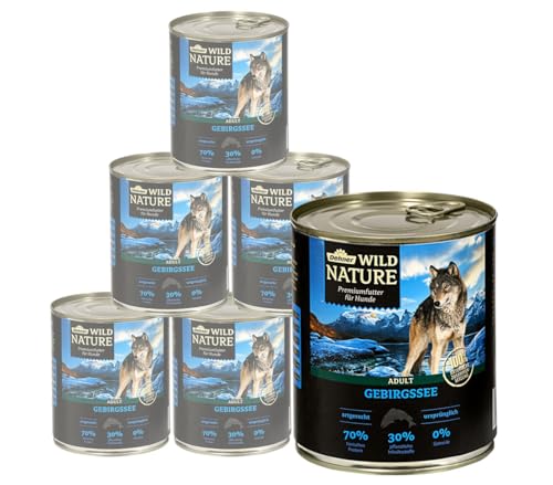 Dehner Wild Nature hundmat bergshav, våtfoder spannmålsfri/sockerfri, för vuxna hundar, lax/kyckling, 6 x 800 g burk (4,8 kg)