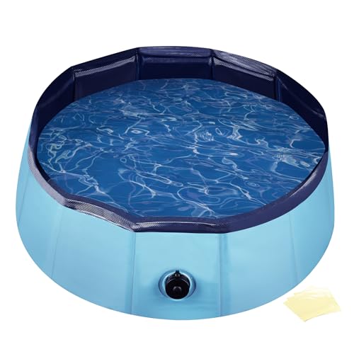 Avilia Hopfällbar hundpool Uppfriskande och halkfri – 120 x 30 cm | Reptålig PVC med avloppsplugg | Perfekt för sommar och husdjur
