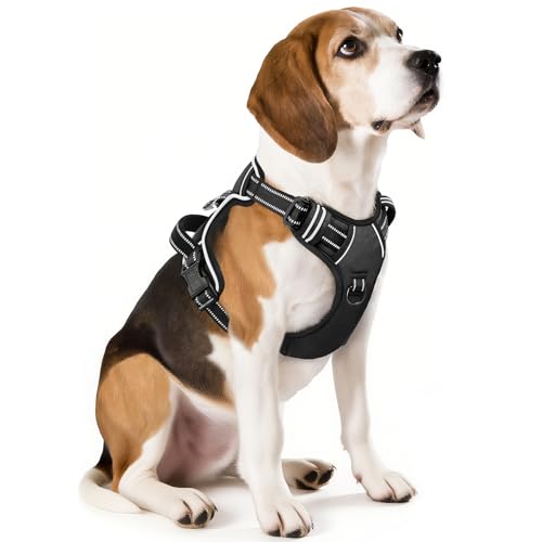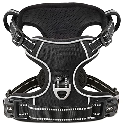HEELE Hundsele, Hundsele Liten Små Medelstora Stor Hund, Andningsbar, Justerbar, Vadderat Handtag, 3 Spännen, Reflekterande Mjuk och Skön Hundsele, Antidragselar, Hundsele Antidrag, Svart, L