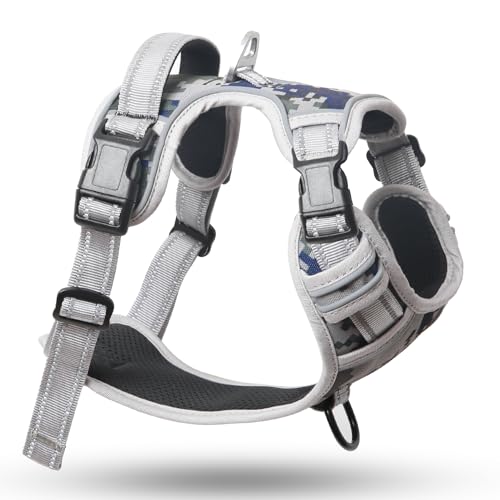 HEELE Hundsele, Hundsele Liten Små Medelstora Stor Hund, Andningsbar, Justerbar, Vadderat Handtag, 3 Spännen, Reflekterande Mjuk och Skön Hundsele, Antidragselar, Hundsele Antidrag, Camo Grå, S