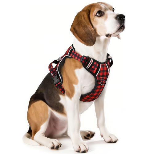 HEELE Hundsele, No-Pull-hundsele, Hundsele Antidrag, Bröstsele för Hundar, Sele för Små, Medelstora och Stora Hundar, Andningsbar, Justerbar, Reflekterande Hundsele, Svart-Röd Pläd, L