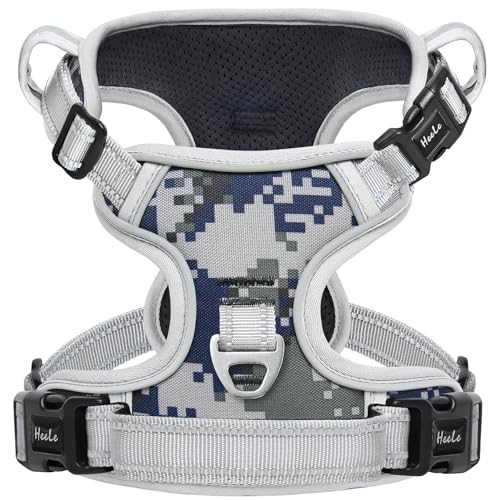 HEELE Hundsele, No-Pull-hundsele, Hundsele Antidrag, Bröstsele för Hundar, Sele för Små, Medelstora och Stora Hundar, Andningsbar, Justerbar, Reflekterande Hundsele, Kamouflage Grå, M