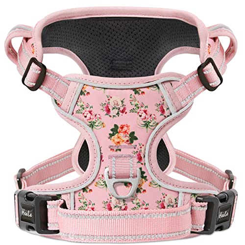 HEELE Hundsele, Hundsele Liten Små Medelstora Stor Hund, Andningsbar, Justerbar, Vadderat Handtag, 3 Spännen, Reflekterande Mjuk och Skön Hundsele, Antidragselar, Hundsele Antidrag, Blommig Rosa, S