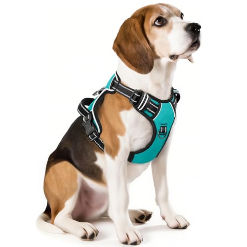 HEELE Hundsele, No-Pull-hundsele, Hundsele Antidrag, Bröstsele för Hundar, Sele för Små, Medelstora och Stora Hundar, Andningsbar, Justerbar, Reflekterande Hundsele Med Vadderat Handtag, Turkos, L