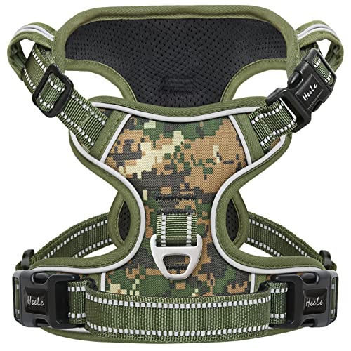 HEELE Hundsele, No-Pull-hundsele, Hundsele Antidrag, Bröstsele för Hundar, Sele för Små, Medelstora och Stora Hundar, Andningsbar, Justerbar, Reflekterande Hundsele, Kamouflage Grön, XL