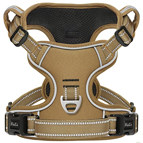 HEELE Hundsele, No-Pull-hundsele, Hundsele Antidrag, Bröstsele för Hundar, Sele för Små, Medelstora och Stora Hundar, Andningsbar, Justerbar, Reflekterande Hundsele Med Vadderat Handtag, Kaki, XL