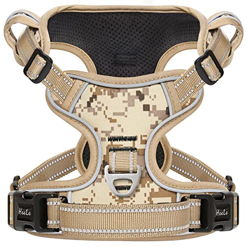 HEELE Hundsele, No-Pull-hundsele, Hundsele Antidrag, Bröstsele för Hundar, Sele för Små, Medelstora och Stora Hundar, Andningsbar, Justerbar, Reflekterande Hundsele, Kamouflage Kaki, L