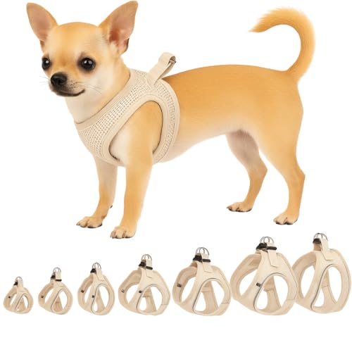 Flamingo Step&Go Bento Hundsele Beige XXS - A:22-23 cm B:24-25 cm x 3 mm - Justerbar med reflekterande ränder - Perfekt för Chihuahua, Yorkshire, Papillon & Pekingese