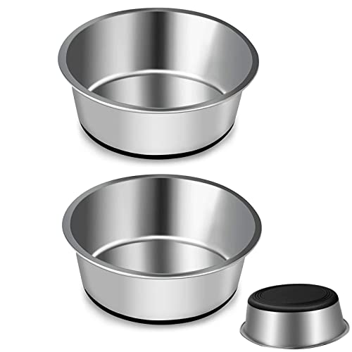 SUOXU Hundskål i rostfritt stål, hundmatningsskålar, matare hundskålar med halkfria gummibaser, medelstora och stora hundmatskålar och vattenskålar, paket med 2