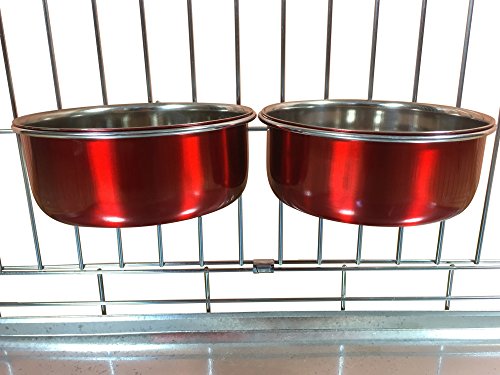 Ellie-Bo par hundskålar för burar/burar eller pennor, 0.9Ltr Medium, Röd