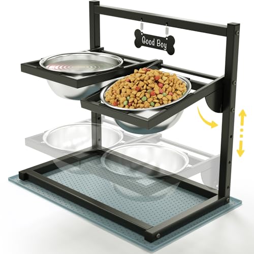 Glad för husdjur smart cykel justerbart matningsstationssystem | förhöjda hundskålinlägg med 3 höjdalternativ hundar | Inkluderar 4 hundskålar
