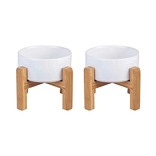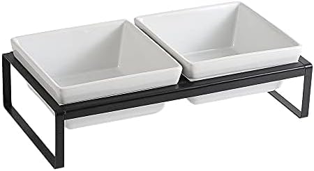AHX Förhöjd hundmat vattenskål – upphöjda hundskålar med halkfri stativ – dubbel hundmatningsskål set med stänksäkert skydd – keramisk husdjursskål för små till medelstora hundar och stora katter