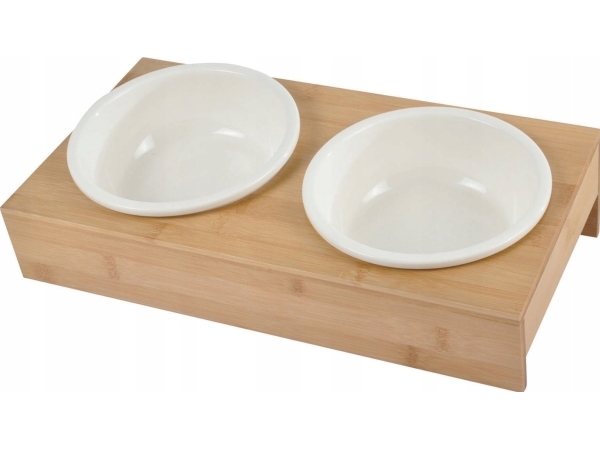 Homea Hundskålar I Keramik, Ø 16 Cm, På Bambustativ