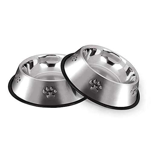 Hotype Hundskålar i Rostfritt Stål Med Halkfri Gummibas - Matar- och Vattenskålar för Liten och Medelstor Hund, Paket Med 2, 22 cm