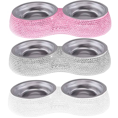 Hundskålar, Savori 320 ml/4,5 uns handgjorda glittrande strass, rostfritt stål, husdjursskålar, dubbeldjursfoder, vattenförsörjning för valpar, hundar, katter (rosa)