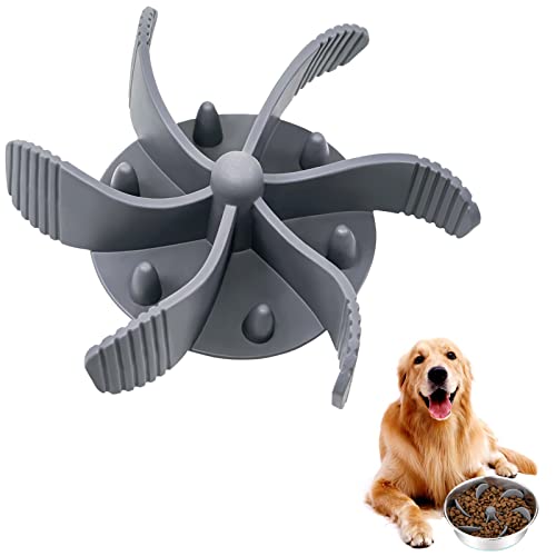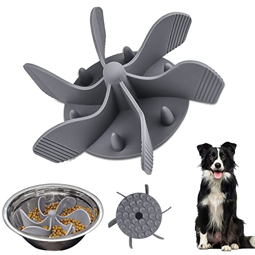 Slow Feeder hundskål insättning, anti-sling skål hundskål anti-choke stora hundskålar kiselgel långsam matskål för hundar ätskålar för hundar tillbehör, lindrar matsmältningen, överätande (grå)