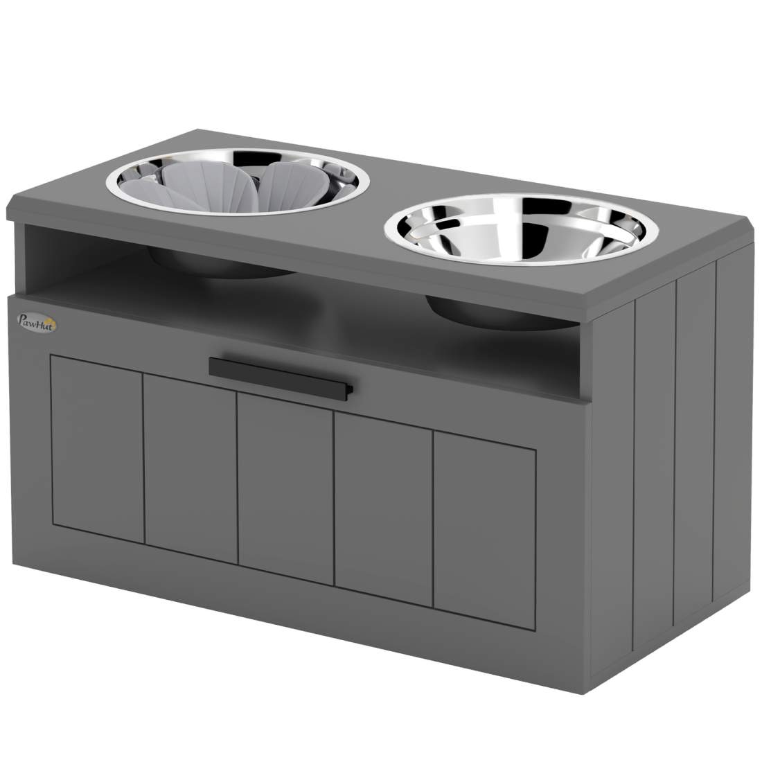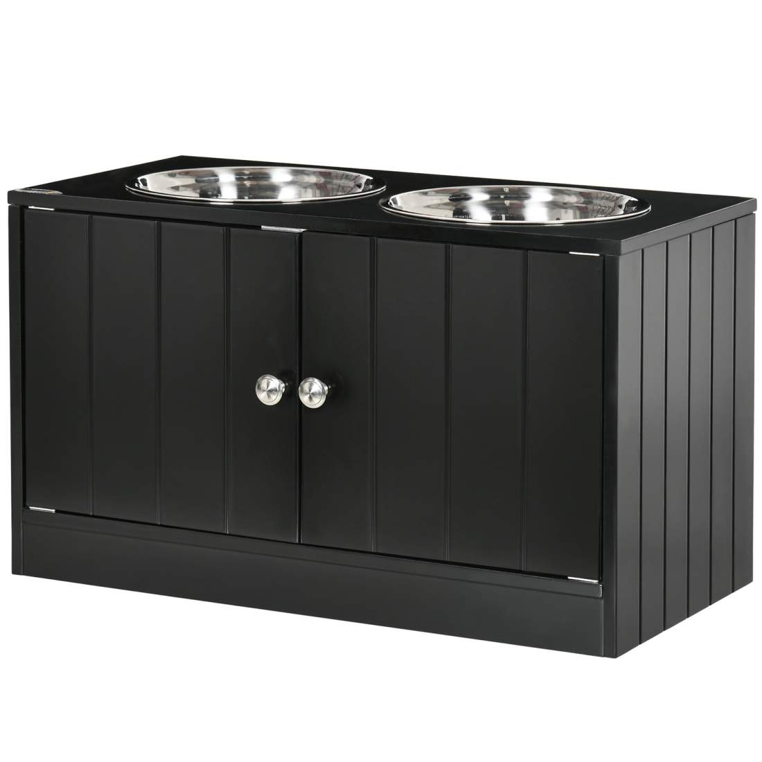 Hundskålar, förhöjd foderstation med 2 skålar i rostfritt stål, ställ för hundskålar med 44L förvaringsutrymme, magnetdörrar, ma