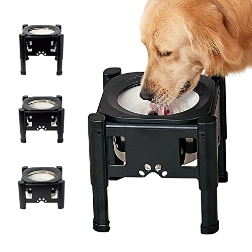 COMESOON förhöjda hundskålar, 4 justerbara höjda skålstativ med 2 tjocka 1,5 dl matskålar i rostfritt stål halkfri matare justerbar till 9,2 tum, 25,5 cm, 30,75 cm, 30,5 cm svart, (DB-W01)