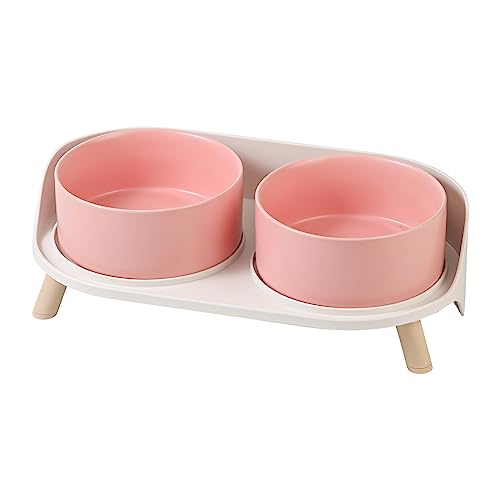 Förhöjd hundmat vattenskål – upphöjda hundskålar med halkfri stativ – dubbel hundmatningsskål set med stänksäkert skydd – keramisk husdjursskål för små till medelstora hundar och stora katter – 850 ml