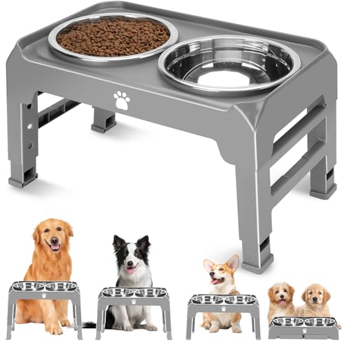 AIRMX Förhöjda hundskålar justerbara höjder hundskålstativ med 2 stora hundskålar i rostfritt stål, halkfri vikbar upphöjd hundmatare för medelstora hundar, justeras till 8 cm, 22 cm, 25,8 cm, 30 cm