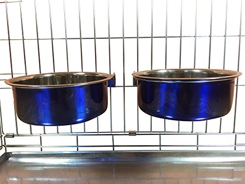 Uppsättning av 2 hundskålar i rostfritt stål – bur, kennel och bur hängande husdjursskålar för mat och vatten – 20 oz varje och diskmaskinssäker av PETMAKER