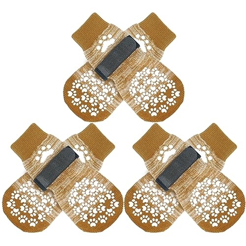 Tsathoggua 3 par halkfria strumpor för inomhus för hundar, tasskydd, självhäftande strumpor för små och medelstora hundar; halkfria justerbara hundstrumpor för inomhusbruk på hårda trägolv (S)