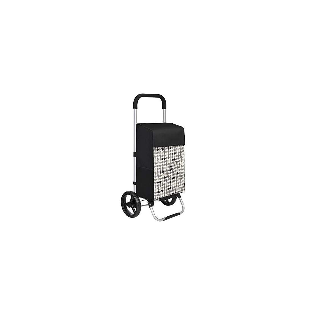 Shoppingvagn på hjul, kundvagn, lastkapacitet 40L, med fickor, tysta hjul, krokar, 47 x 33 x 97 cm, hundtandsmönster, svart KST0
