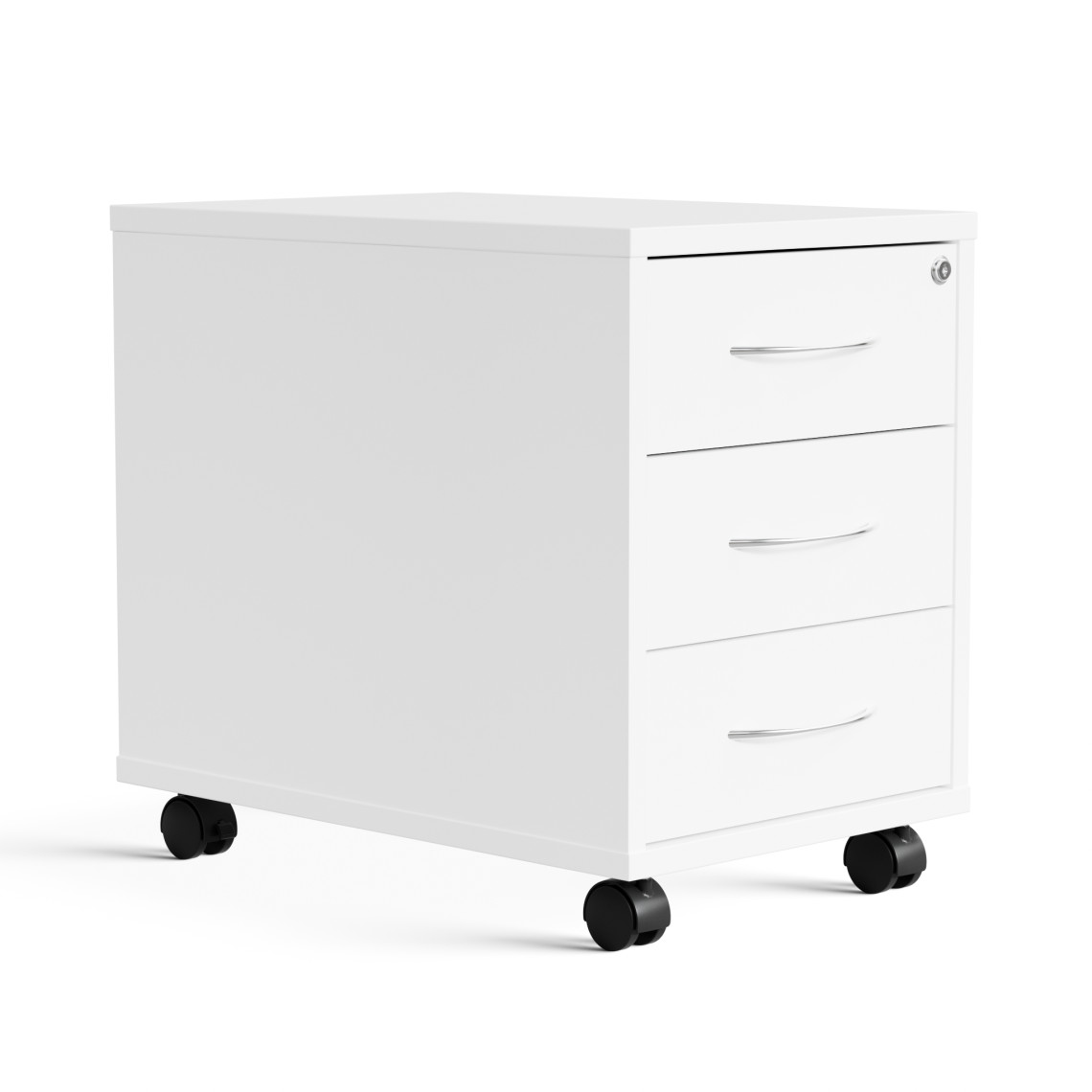 Smal byrå / hurts med 3 lådor och hjul – Vit