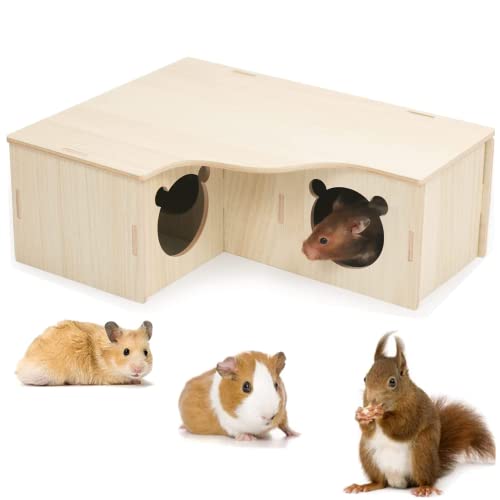 Bangminda Hamster trähus, flerkammarhus, hamster, hamster, trä, marsvin, hus för bur, trähus, hamster, gömställe för smådjur, racerbils, dvärghamster, L (3 kammare)