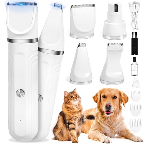 NXPZ 4-i-1 Trimningsset För Husdjur, Tyst Trimmer För Hund Och Katt, Med 4 Multifunktionshuvuden, USB-C Snabbladdning, Lämplig För Tassar, Ögon, Öron Och Ansikte På Katter Och Hundar
