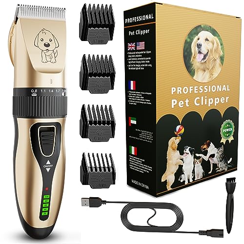 GLOBAL TECH Hundklippare, uppladdningsbara lågt brus sladdlösa husdjursklippare för hundar katter och andra husdjur – professionell hundklippningsklämmare kit rakapparat trimmer lämplig för tjockt