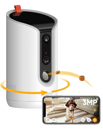 Arenti Hundkamera 360° husdjurskamera 2K automatisk foderdispenser med godisutmatning med app kattkamera, mörkerseende, tvåvägsljud, rörelsedetektering