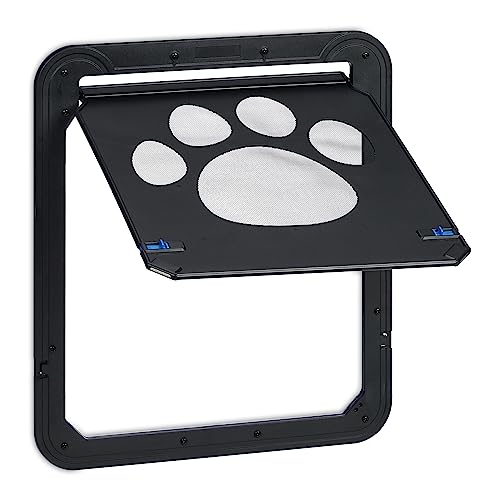 Relaxdays Husdjurslucka för insektsskärmdörr, för stora hundar, H x B): 42 x 37 cm, magnet, hundlucka låsbar, svart