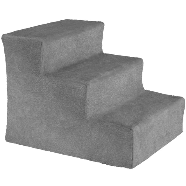 Relaxdays Husdjurstrappa 3 nivåer, hundar och katter, H x B x D: 33 x 36,5 x 52 cm, mjuk hundtrappa, för säng, soffa, grå