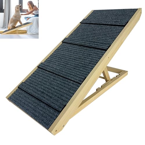 LZQ LZQ-( HAG7510A) Hundtrappa, hundrampa, bil, hopfällbar för små hundar och katter, bärbar hundstege, höjdjusterbar husdjurstrappa av trä med halkfri matta för säng, soffa, 100 cm lång, Höjdjusterbar hundramp