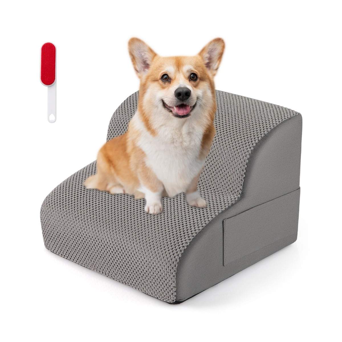 Galatée Hundtrappa, mjuk bekväm husdjurstrappa med tvättbart blixtlåsskydd, lätt att gå på, hundrampsteg, hundramp, steg för soffa, säng (grå)