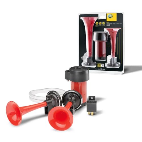 HELLA 3AM 012 588-341 horn – HELLA STYLE HORN S98 SET – 12 V – 115 dB(A) – frekvensområde: 335/400 Hz – djupton/diskant – elektrisk – ECE – husfärg: röd/svart – kvantitet: 2