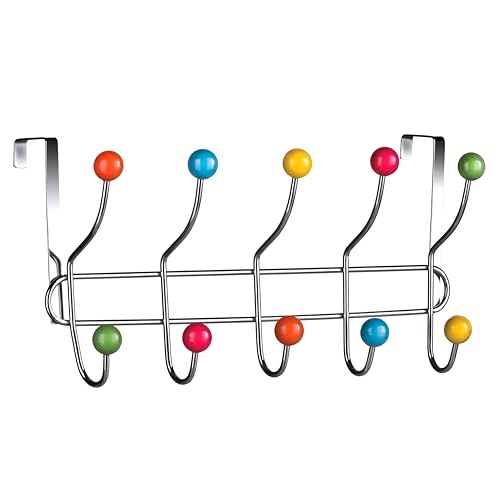 Premier Husgeråd över dörrkrokar flerfärgad plast över dörrhängare/hängare för sovrum 10 kromfinish krok baksidan av dörrkappshängaren 40 x 12,5 x 17,5