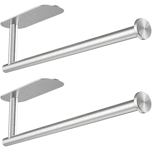 gewtur Hushållspappershållare, självhäftande köksrullehållare, vägg, rostfritt stål, hushållspappershållare för alla kökspapper (silver, 2 stycken)