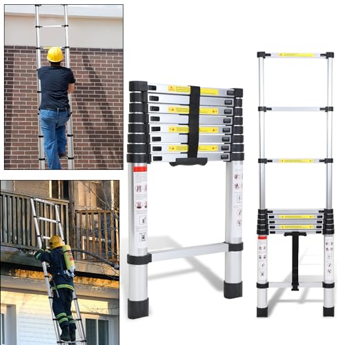 SWANEW Teleskopstege i aluminium, 2,6 m utdragbar stege, hopfällbar stege stående stege halkfri, utdragbar stege multifunktionsstege, hushållsstege 150 kg lastkapacitet