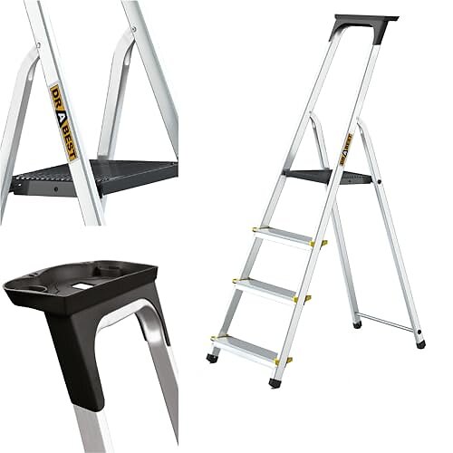 Drabest 4-Stegs Aluminium Dubbelsidig Hushållsstege 125kg Kapacitet - Stegstege med Arbetsstegeplattform – Stegar Multifunktion – Stegsteg 4 Steg – 44 X 86,5 X 16 Cm