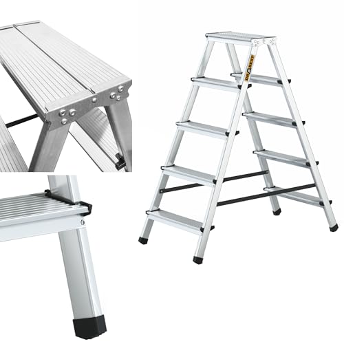 Drabest 5-Stegs Aluminium Dubbelsidig Hushållsstege 125kg Kapacitet - Stegstege med Arbetsstegeplattform – Stegar Multifunktion – Stegsteg 5 Steg – 46 X 109 X 16 Cm
