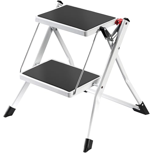 KINGRACK 2 steg, vikbar i 2 steg med halkfri, bred pedal och ledstänger, lätta hushållsstege för kök, skafferi, skåp, kontor