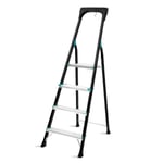 KADAX Ensidig stålstege med halkfria fötter, stegstege, stege med hylla, stegstege, vikstege, hushållsstege med breda steg (4 steg)
