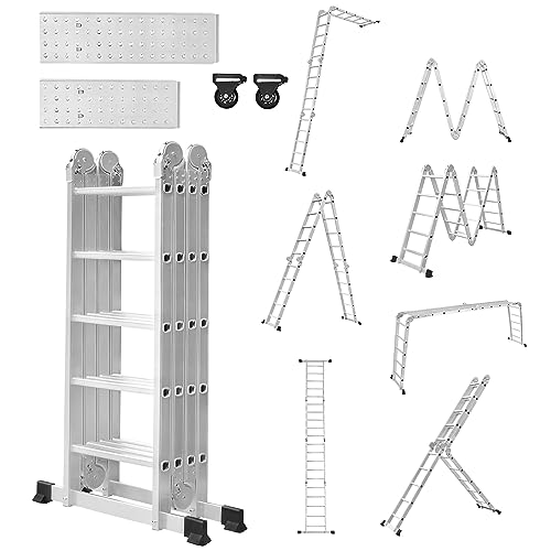 Yakimz 5,82 m multifunktionsstege, 7-i-1 aluminiummultifunktionsstege, 4 x 5 steg, 2 byggnadsställningar, 2 rullar, vikstege, arbetsstege, hushållsstege, stegstege