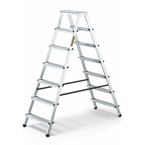 DRABEST Hopfällbar stege aluminiumstege hopfällbar båda sidor 2 x 7 steg, stegstege upp till 150 kg, lastbar hushållsstege, TÜV-certifierad